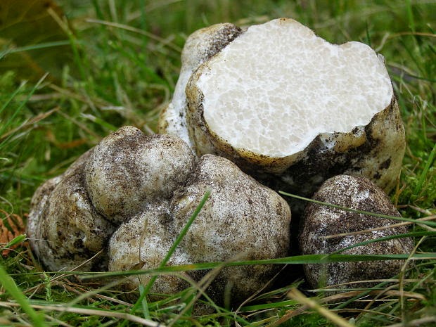 Este o trufă care crește în condiții climaterice și de sol mai speciale, pământul trebuie să fie calcaros, aerisit, afinat și umed pe tot parcursul anului, din cauza că sunt foarte puține solurile care îndeplinesc aceste condiții, trufa albă crește mai rar, fiind și cea mai scumpă, trăiește în comun cu teiul, plopul, stejarul, salcia, este sferică, culoarea variază de la ocru palid, la un crem închis, are o formă neregulată cu multe adâncituri.